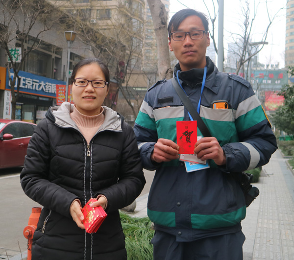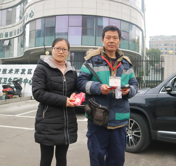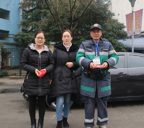 開年第一天上班,公司領(lǐng)導(dǎo)給奮戰(zhàn)在一線的停車收費(fèi)員發(fā)開門紅包