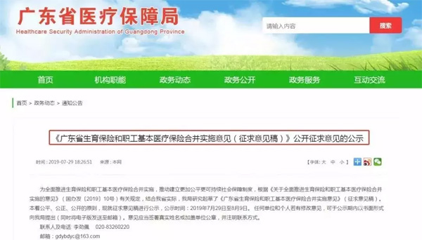![]() 就在國家政策發(fā)布不久,各地區(qū)紛紛響應(yīng),出臺相應(yīng)措施。 7月29日,廣東省醫(yī)療保障局發(fā)布《廣東省生育保險和職工醫(yī)療保險合并實施意見(征求意見稿)公開征求意見的公示》,公示指出:2019年年底廣東省將實現(xiàn),生育保險和基本醫(yī)療保險合并實施。