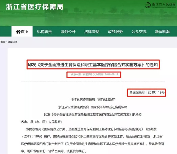 9月12日,浙江省醫(yī)保局發(fā)布《關(guān)于全面推進(jìn)生育保險和職工基本醫(yī)療保險合并實施方案》的通知,明確兩險合并的具體實施方案。