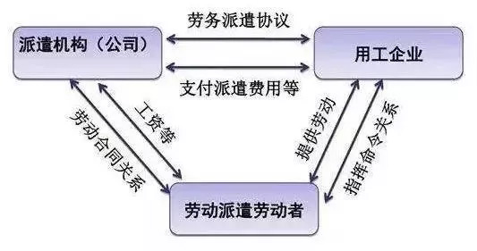 勞務(wù)派遣是指由派遣單位與派遣勞工訂立勞動合同,由派遣勞工向要派企業(yè)給付勞務(wù),勞動合同關(guān)系存在于派遣機(jī)構(gòu)與派遣勞工之間,但勞動力給付的事實(shí)則發(fā)生于派遣勞工與要派企業(yè)之間。勞務(wù)派遣最顯著特征就是勞動力的雇用和使用相分離。 勞務(wù)派遣的三方法律關(guān)系 1、勞務(wù)派遣單位與被派遣勞動者之間的關(guān)系 在勞務(wù)派遣用工形式下,勞動者與勞務(wù)派遣單位簽訂勞動合同,雙方建立勞動關(guān)系。根據(jù)《勞動合同法》第五十八條“勞務(wù)派遣單位是本法所稱用人單位,應(yīng)履行用人單位對勞動者的義務(wù)。” 該條款明確了勞務(wù)派遣單位的雇主需承擔(dān)支付勞動者的工資報酬、社會保險等責(zé)任。但這種勞動關(guān)系有別于正常的勞動關(guān)系,勞務(wù)派遣單位并不實(shí)際使用勞動者,而是將其派遣至實(shí)際用工企業(yè)從事勞動。 2、勞務(wù)派遣單位和實(shí)際用工企業(yè)之間的關(guān)系 在勞務(wù)派遣中,派遣單位與用工企業(yè)簽訂勞務(wù)派遣合同,約定雙方的權(quán)利義務(wù),在合同中,派遣單位承擔(dān)的義務(wù)主要是把符合用工單位要求的合格勞動者提供給用工單位,用工單位承擔(dān)的義務(wù)主要是向派遣單位支付服務(wù)費(fèi)用,該協(xié)議符合民事合同的基本特征,雙方之間建立的是民事法律關(guān)系中的民事合同關(guān)系。 通過該種形式,用工企業(yè)將用工責(zé)任部分轉(zhuǎn)嫁給勞務(wù)派遣單位,通過設(shè)置差異化薪酬福利制度,達(dá)到降低用工成本的目的。