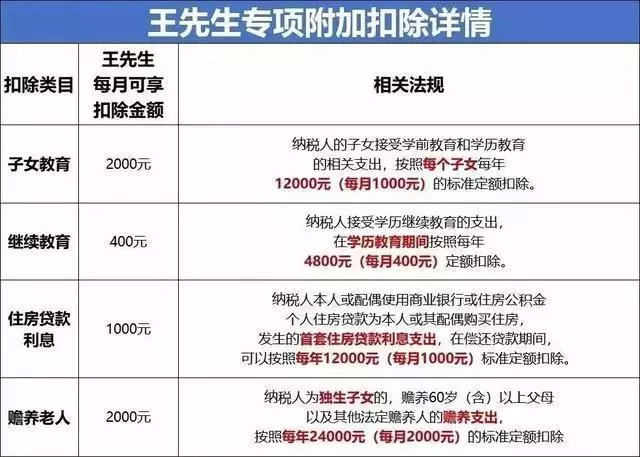 六大扣除可謂是給人民群眾減輕了不少負擔,據國家稅務總局數據顯示,前三季度,個人所得稅改革新增減稅4426億元,人均累計個稅減稅1764元,惠及2.5億納稅人。 國家稅務總局局長表示,月收入1萬元以下的納稅人,享受贍養老人、子女教育等專項附加扣除后,基本無需繳納個稅。 如果你的收入屬于這個區間,就相當于不用交稅了! 舉個例子:拿一個朋友(王先生)舉例!他是一個典型上有老下有小,求學中、背著房貸的偽中產! 王先生背景: √攻讀在職研究生 √獨生子女且父母已年滿60歲 √有兩個這正在上學的孩子 √有一套正在還貸款的住房 王先生是如何享受零納稅的: 2018年10月1日前,王先生繳納個稅金額:(10000-3500)*20%-555=745元; 2018年10月1日后,王先生繳納個稅金額:(10000-5000)*10%-210=290元; 根據《暫行辦法》,王先生可以享受的是子女教育、繼續教育、住房貸款利息和贍養老人4項專項附加扣除。