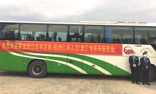 浙江五豐食品(杭州仁本人力)聯(lián)合復工專車