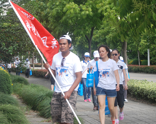 越野拓展活動分為5個戰斗小組,每個小組十名,其中包括十所大學的大學生代表,在大學生代表中,還有5名外國留學生代表,他們分別來自于馬達加斯加、法國、哈薩克斯坦、吉爾吉斯。