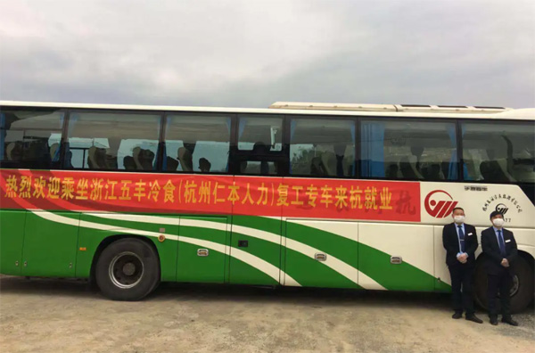 浙江五豐食品(杭州仁本人力)聯(lián)合復(fù)工專車 短短時(shí)間內(nèi)我們收集參與杭州政府開設(shè)的復(fù)工復(fù)產(chǎn)專列的報(bào)名復(fù)工人員信息239條,通過參與五豐食品和玫隆食品等企業(yè)的多趟復(fù)工專列,接回返杭復(fù)工人員超過500多人。