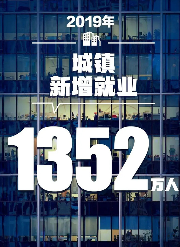 2019年,我國城鎮新增就業1352萬人,調查失業率在5.3%以下。