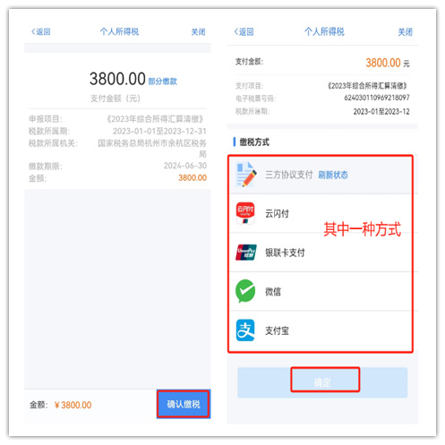 納稅人辦理匯算補(bǔ)稅的,可以通過(guò)網(wǎng)上銀行、辦稅服務(wù)廳POS機(jī)刷卡、銀行柜臺(tái)、非銀行支付機(jī)構(gòu)等方式繳納。郵寄申報(bào)并補(bǔ)稅的,納稅人需通過(guò)個(gè)稅APP及網(wǎng)站或者主管稅務(wù)機(jī)關(guān)辦稅服務(wù)廳及時(shí)關(guān)注申報(bào)進(jìn)度并繳納稅款。