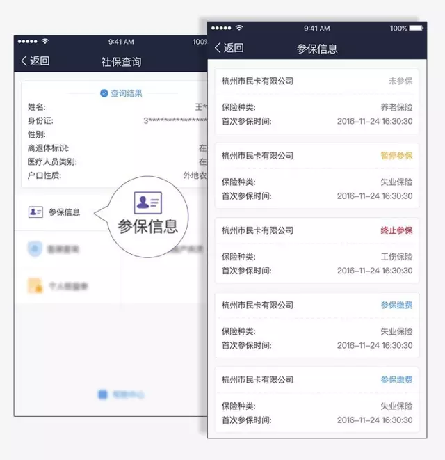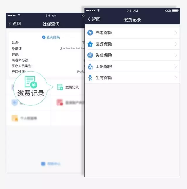 “參保信息”記錄了你在最近一家公司第一次繳納社保的時間和險種類型,快看看你的五險交齊了嗎? 繳費記錄