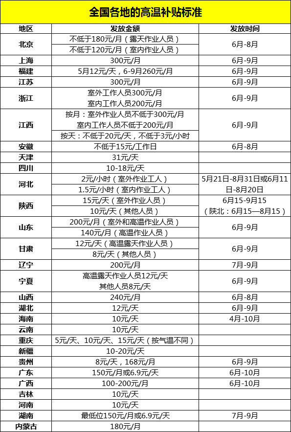 06、全國各地的高溫補貼標準