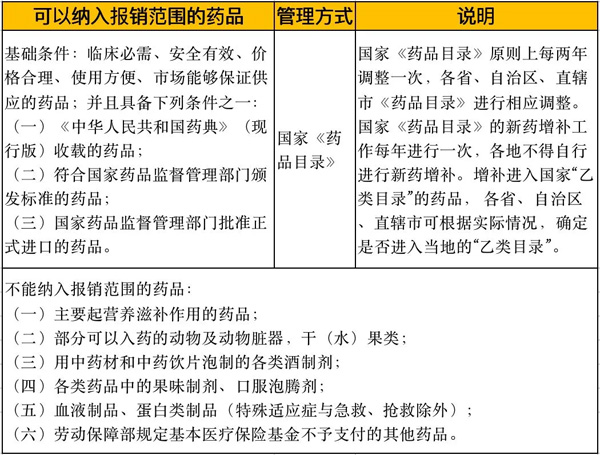 參保人可報銷的藥品范圍一覽表