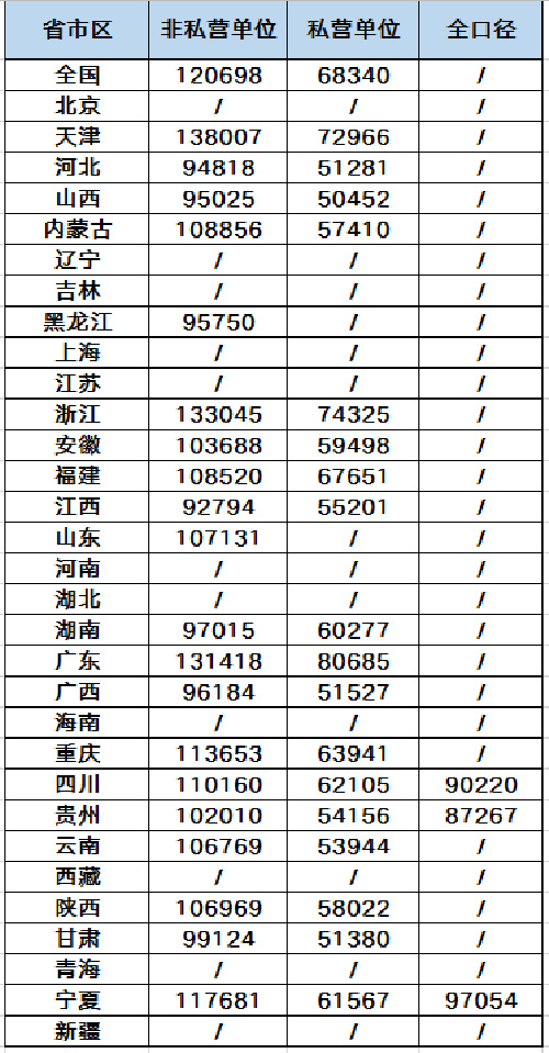 2023年全國各省市社會平均工資匯總表 目前,已經(jīng)有部分省市公布了2023年城鎮(zhèn)非私營單位、城鎮(zhèn)私營單位就業(yè)人員年平均工資,少數(shù)省份公布了全口徑城鎮(zhèn)單位就業(yè)人員平均工資(2024年社保基數(shù)),小智為您整理全國各省的數(shù)據(jù)如下: