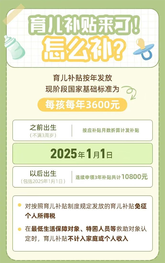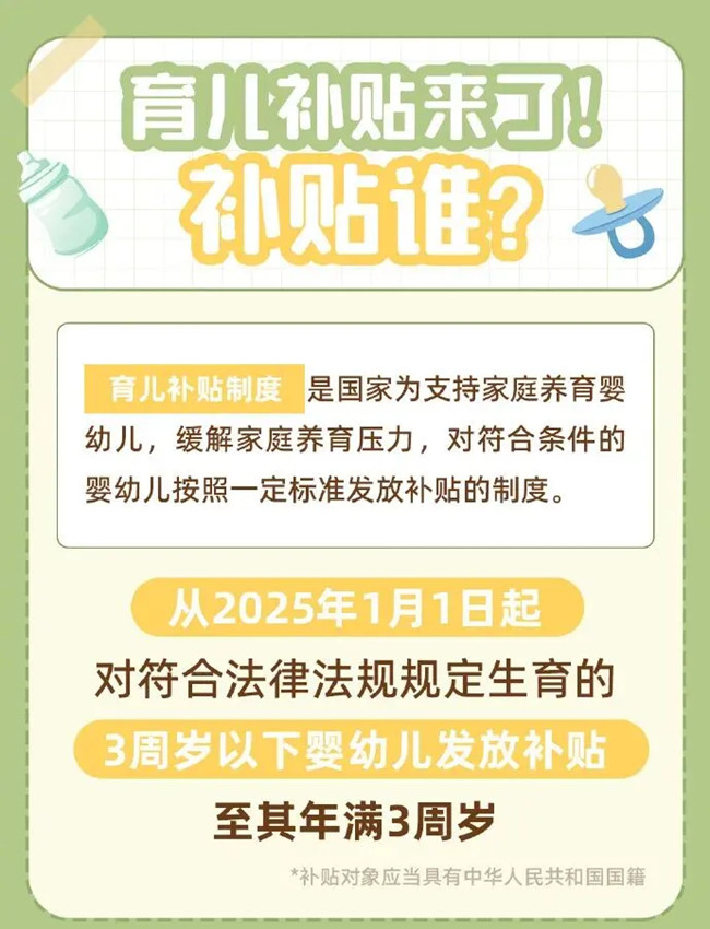 育兒補貼補貼誰?怎么補?2025年1月1日之前出生、不滿3周歲嬰幼兒補貼怎么發?戳圖讀懂↓↓